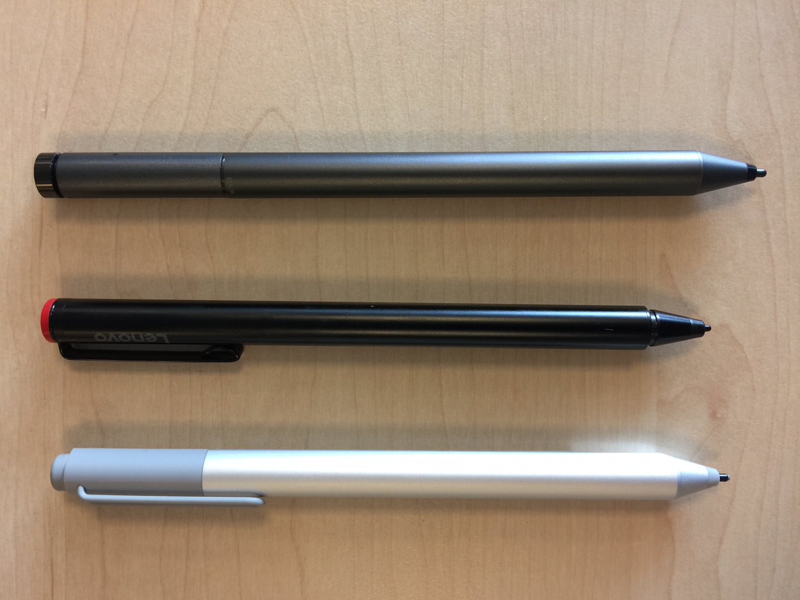 3 Styli (from bottom to top): Surface Pro 4, Lenovo Active Pen, Lenovo Active Pen 2