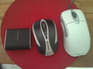 The Microsoft Wedge Mouse is an interesting mouse for sure. The first thing you notice is that the thing is tiny, if you have big hands, basically you can forget about using it. Here are a couple of pictures of it next to a Microsoft Bluetooth Mouse 5000 and the old faithful so you can appreciate the size: