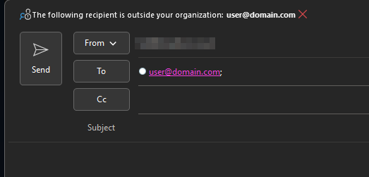 Enhances Security Awareness: By notifying users about external recipients, it raises awareness about potential phishing or hacking attempts, where someone might be pretending to be an internal contact