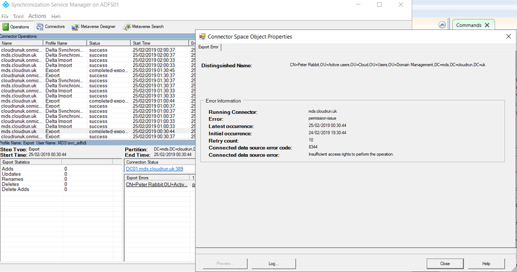 Fixing Azure AD Connect permissions errors using Set-ADSyncExchangeHybridPermissions