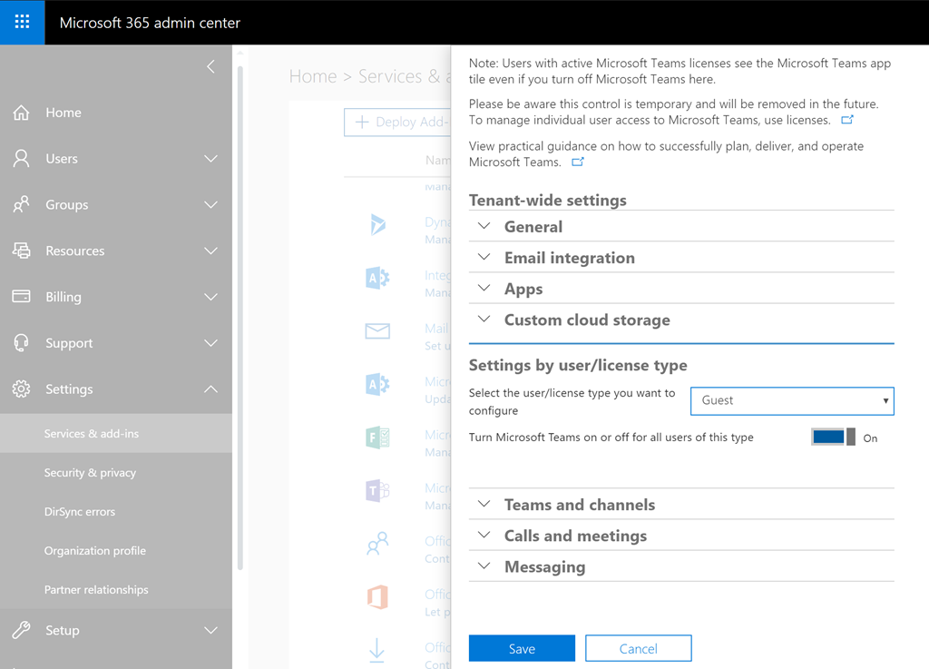Enable Guest access to Teams
