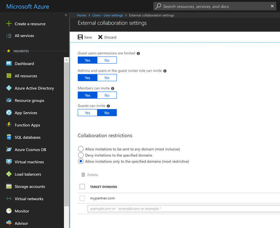 - Allow invitations only to the specified domain (recommended)