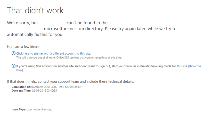 However sometimes this doesn’t work and they get the user not found in directory error.