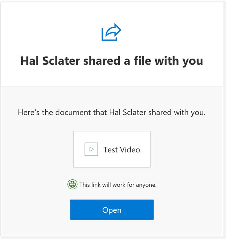 - The user will receive an email as below with a link to the video, which will play in their browser directly from OneDrive.